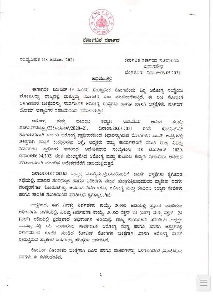 Subject : Revision of package rates for private health care for the treatment of Covid patients prescribed by the government in public health and private hospitals